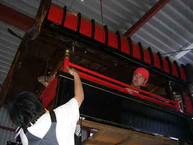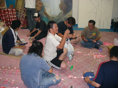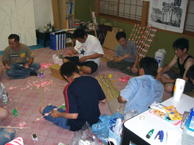 森祇園では祇園車に竹ひごと和紙で作った花を付けます