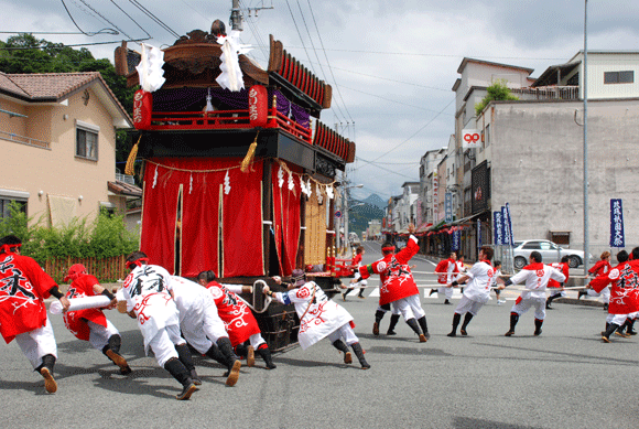 北山田地区から玖珠祇園大祭会場付近までは少し距離が遠いのでトラックによる輸送を行ないます