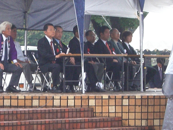 市議会議員さんなどのお歴々が揃う中で…隣には中津の梶原議長さん…