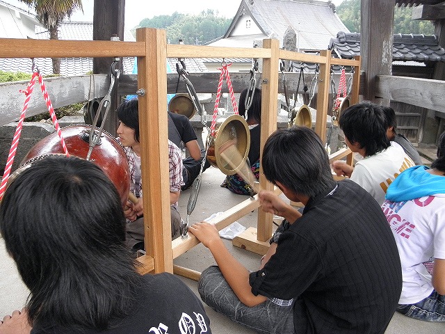 今年は町内、安楽寺の境内を借りて囃子方練習中です