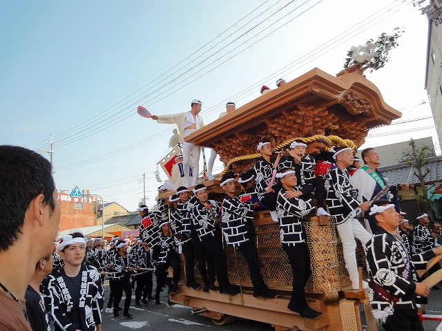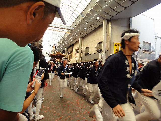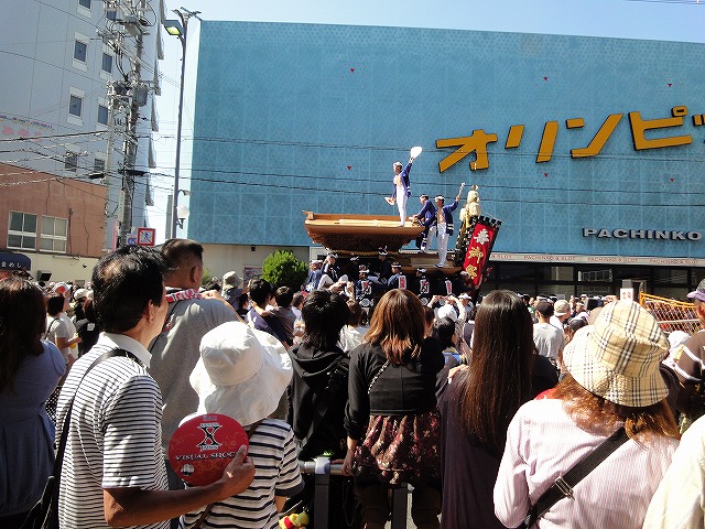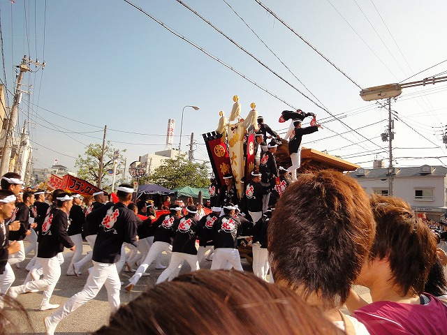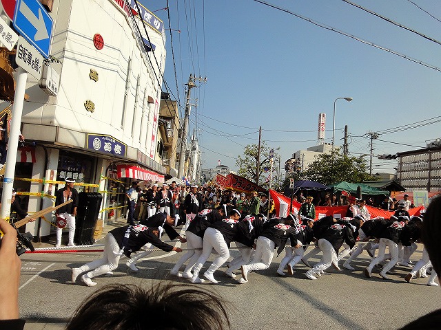 交差点やカーブを豪快にやりまわしていくだんじりを見ながら